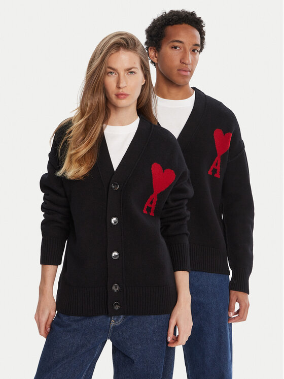 AMI Paris Кардиган BFUKC006.018 Черен Regular Fit цвят