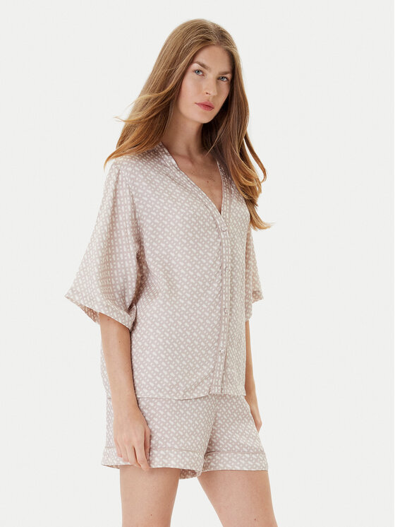 BOSS Тениска на пижама Sateen 50545615 Бежов Relaxed Fit цвят за Жени