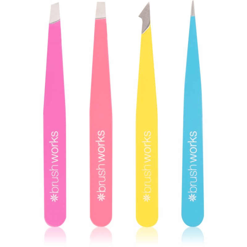 За продукта: Brushworks Tweezer Set Neon, 4 бр., пинцети за жени, Пинсетата Brushworks Tweezer Set ще ви избави от всички нежелани косъмчета и ви гарантира съвършено оформяне на веждите. Характеристики: точно изтръгва косъмчетата без излишна болка захваща и най-малките косъмчета във всяка чанта и при пътуване Начин на употреба: Захванете косъмчето възможно най-близо към корена и изтръгнете с рязко движение.
