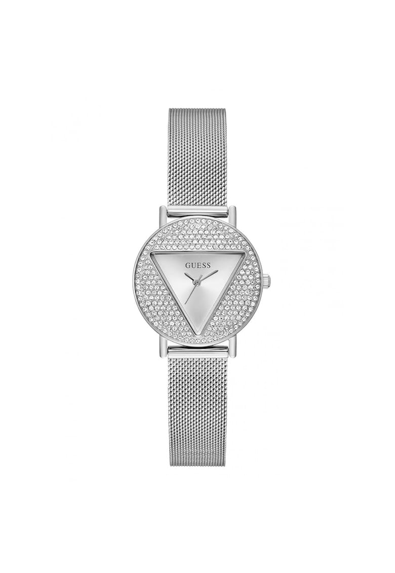 Една от най-новите тенденции в категория Часовници. Добавете към своя стил с нашата изискана колекция от Часовници на GUESS. Ние разполагаме с перфектните артикули, които да допълнят всяко облекло и да направят трайно впечатление. Нашата внимателно подбрана селекция модни аксесоари включва най-добрите марки и изключителни дизайни, гарантиращи изключително качество. Характеристики Механизъм: кварцов Тип дисплей: аналогов Стил: ежедневен Функции: показва минути Степен на водоустойчивост: 3 atm Циферблат Материал на стъклото: минерално стъкло Цвят циферблат: сребърен Вид разграфяване на циферблата: линии Рамка Форма на рамката: … от GUESS ще добави нотка елегантност, подчертаващ Вашият стил. Нашите модни аксесоари ще превърнат външния ви вид от обикновен в необикновен. Пазарувайте сега и разгърнете своята креативност с нашата широка гама от Часовници.