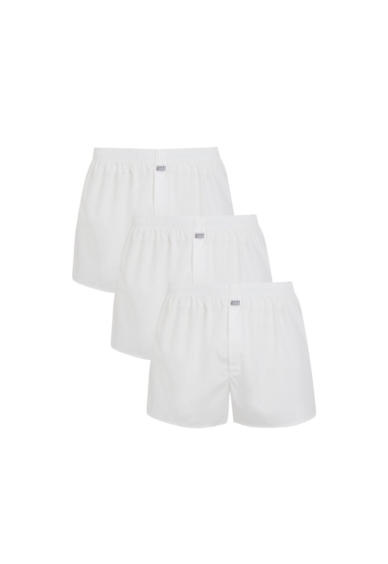 Характеристики Тип продукт: боксерки Съдържание пакет: 3 чифта боксерки Цвят: бял Брой/комплект: 3 Принт: лого Материал: памук Талия: еластична Състав Външна част: 100% памук