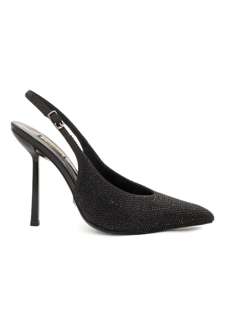 Характеристики Материал: текстил Цвят: черен Връх: остър Състав Материал интериор: кожа Материал подметка: тунит Размери Височина на tок: 11 cm