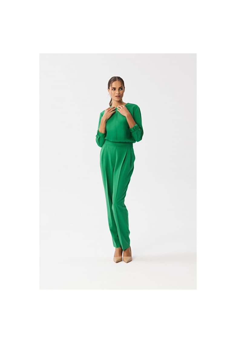 Общи характеристики Цвят: зелен Кройка: права Стил: елегантен Материал: полиестер – вискоза – еластан Дължина ръкав: дълъг ръкав Дължина панталон: дълъг Състав Външна част: 65% полиестер – 30% вискоза – 5% еластан