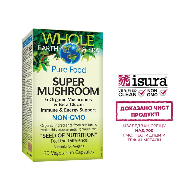 Super Mushroom – медицински гъби за имунитет и енергия, 60 капсули за 2 месеца прием Natural Factors